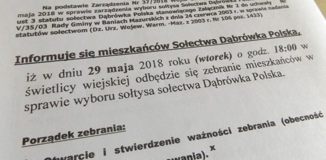 ZARZĄDZONO WYBORY SOŁTYSA SOŁECTWA DĄBRÓWKA POLSKA