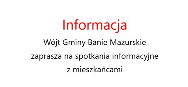 Wójt Gminy Banie Mazurskie zaprasza na spotkania informacyjne z mieszkańcami: Sołectwo Ziemiany (Wiata w Kulszach)…