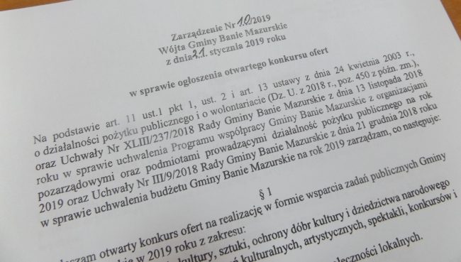 Opublikowano Zarządzenie Nr 10/2019 Wójta Gminy Banie Mazurskie z dnia 21 stycznia 2019 roku w sprawie…