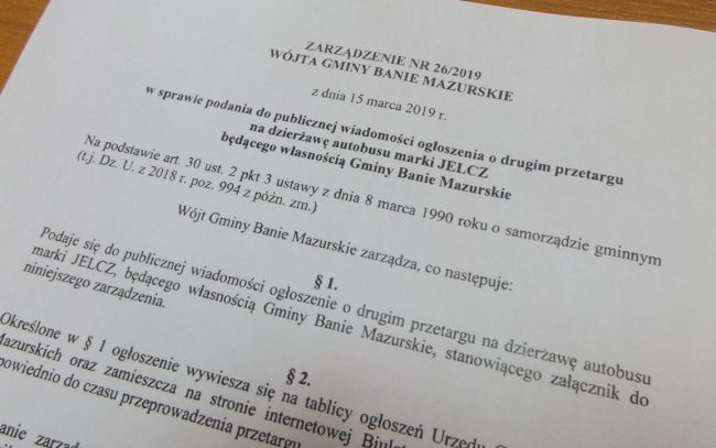 DRUGI PRZETARG NA DZIERŻAWĘ AUTOBUSU MARKI JELCZ
