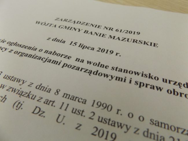 NABÓR NA WOLNE STANOWISKO URZĘDNICZE DS. WSPÓŁPRACY Z ORGANIZACJAMI POZARZĄDOWYMI I SPRAW OBRONNYCH.
