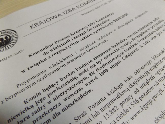 Warszawa, dnia 19.09. 2019 r. Znak: MZ/ 68 /2019r Komunikat Prezesa Krajowej Izby Kominiarzy do właścicieli i…