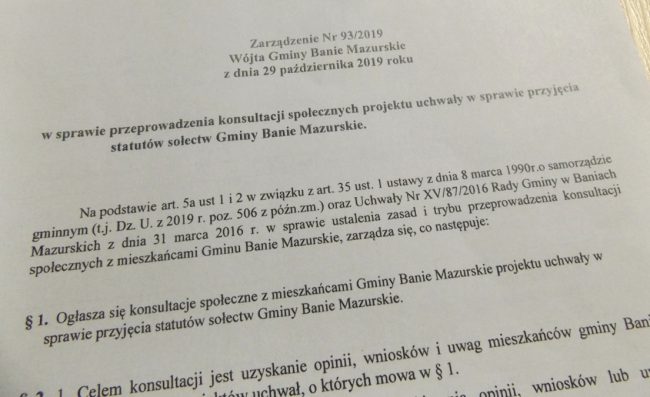 KONSULTACJE SPOŁECZNE PROJEKTU UCHWAŁY W SPRAWIE PRZYJĘCIA STATUSÓW SOŁECTW