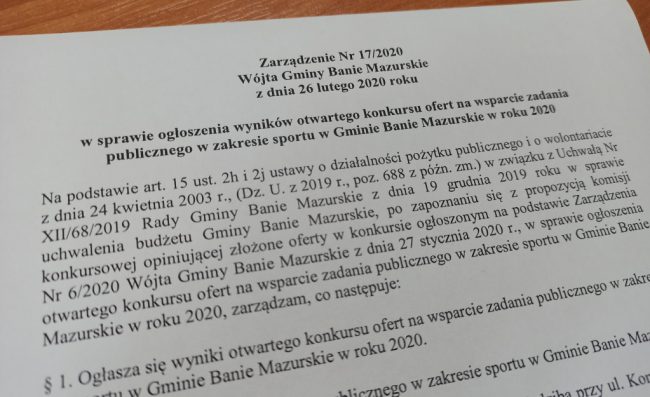 WYNIKI WS. KONKURSU OFERT DOT. SPORTU W GMINIE BANIE MAZURSKIE W 2020 ROKU