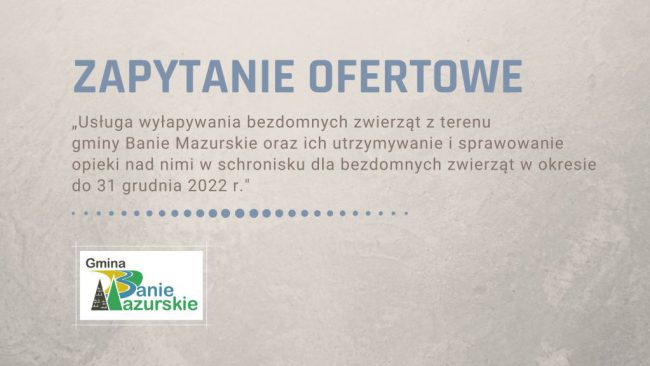 Gmina Banie Mazurskie opublikowała zapytanie ofertowe GKIŚ.ZO.271.3.2021 pn. „Usługa wyłapywania bezdomnych zwierząt z terenu gminy Banie…