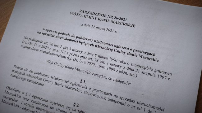 Zarządzeniem Nr 26/2021 Wójta Gminy Banie Mazurskie z dnia 12 marca 2021 roku podano do publicznej…