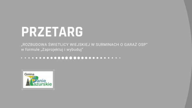 Gmina Banie Mazurskie opublikowała zamówienie publiczne GKIŚ.ZP.271.6.2021 na „ROZBUDOWĘ ŚWIETLICY WIEJSKIEJ W SURMINACH O GARAŻ OSP”…
