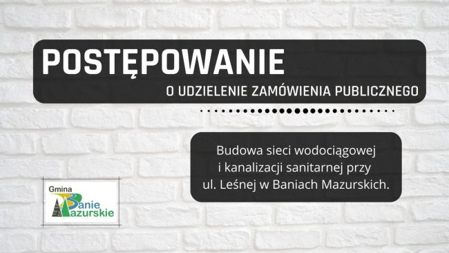 Gmina Banie Mazurskie opublikowała postępowanie o udzielenie zamówienia publicznego GKIŚ.ZP.271.7.2023 na Budowę sieci wodociągowej i kanalizacji…