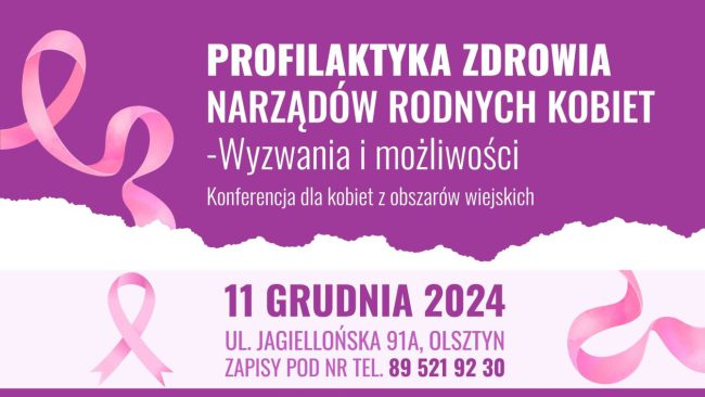 W środę 11 grudnia 2024 roku odbędzie się w Olsztynie konferencja „Profilaktyka zdrowia narządów rodnych kobiet…