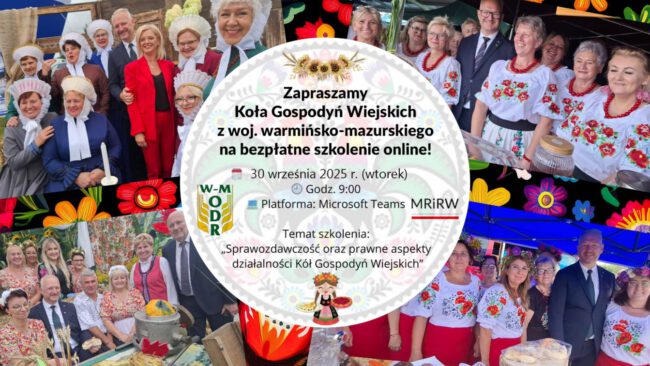 Warmińsko-Mazurski Ośrodek Doradztwa Rolniczego z siedzibą w Olsztynie ma zaszczyt zaprosić członkinie i członków Kół Gospodyń…