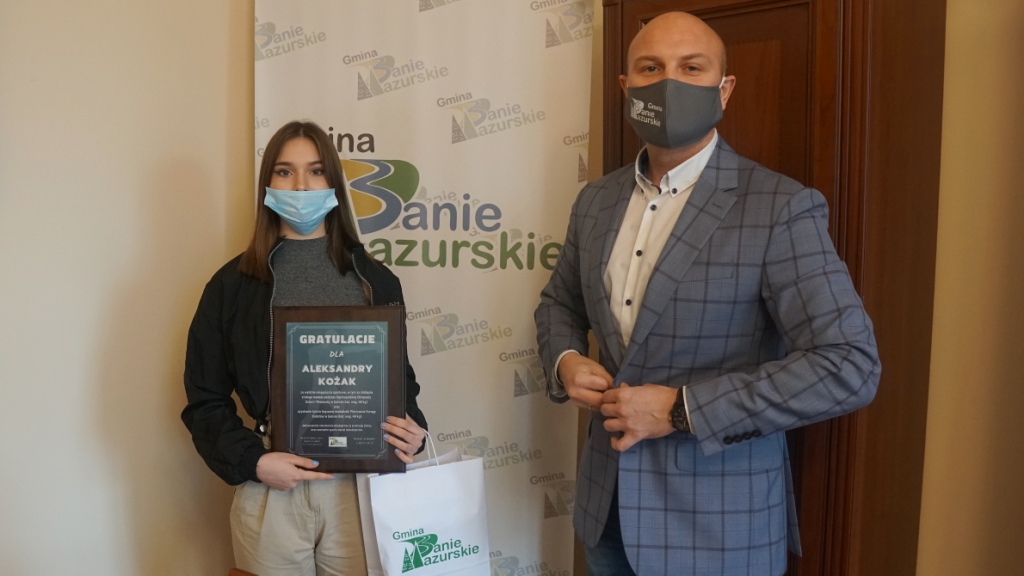 Wczoraj, 1 marca 2021 r. w Urzędzie Gminy w Baniach Mazurskich mieliśmy przyjemność gościć utalentowaną zawodniczkę sztuk walki z terenu naszej gminy – Aleksandrę Kożak, zamieszkałą w Lisach, która na spotkanie z wójtem gminy przybyła wraz z mamą – Kamilą. Aleksandra na co dzień reprezentuje Międzyszkolny Uczniowski Klub Sportowy „Husaria Gołdap” i pomimo bardzo młodego wieku (17 lat), w swoim sportowym dorobku ma już wiele istotnych i godnych podziwu sukcesów.