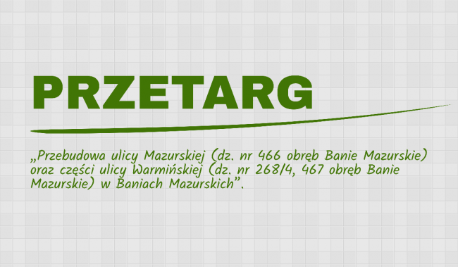 Na stronie BIP Gminy Banie Mazurskie opublikowano przetarg nieograniczony GKIŚ.ZP.271.2.2019 na „Przebudowę ulicy Mazurskiej (dz. nr 466…