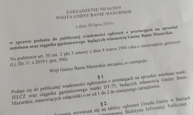 Na stronie internetowej BIP Gminy Banie Mazurskie zamieszczono Zarządzenie Nr 64/2019 Wójta Gminy Banie Mazurskie z…