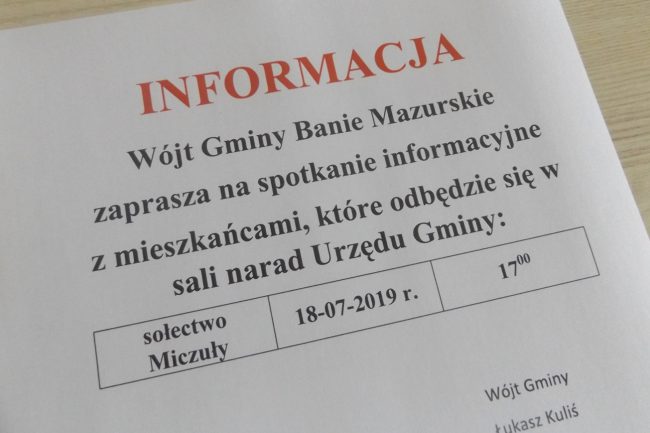 Wójt gminy Łukasz Kuliś zaprasza mieszkańców sołectwa Miczuły na spotkanie informacyjne, które odbędzie się dnia 18.07.2019…
