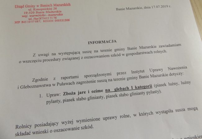 12 lipca 2019 r. (po wcześniejszym zgłoszeniu telefonicznym) na terenie Gminy Banie Mazurskie w zabudowie jednorodzinnej…