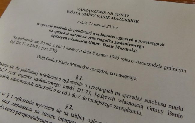 Podczas ostatniej sesji Rady Gminy Banie Mazurskie (23.05.2019 r.) podjęto uchwałę w sprawie określenia zasad udzielania…