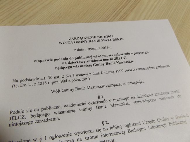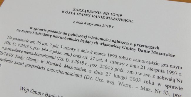 Opublikowano Zarządzenie Nr 2/2019 Wójta Gminy Banie Mazurskie z dnia 7 stycznia 2019 r. w sprawie…