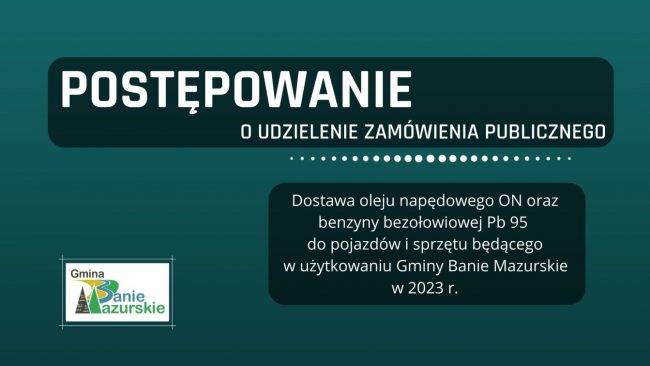 Gmina Banie Mazurskie opublikowała zapytanie ofertowe GKIŚ.ZO.271.1.2023 na „Dostawę oleju napędowego ON oraz benzyny bezołowiowej Pb 95…