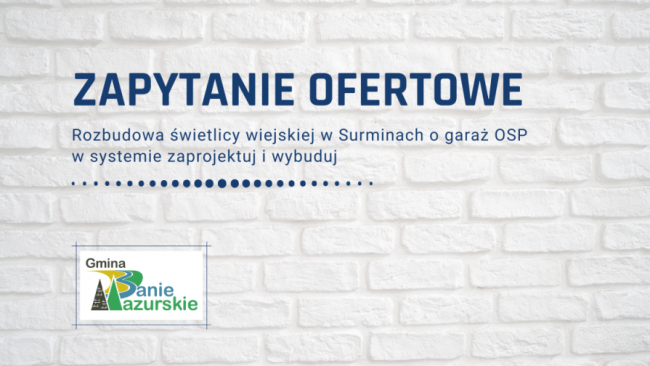 Gmina Banie Mazurskie opublikowała zapytanie ofertowe GKIŚ.ZO.271.15.2021 na „Rozbudowę świetlicy wiejskiej w Surminach o garaż OSP…