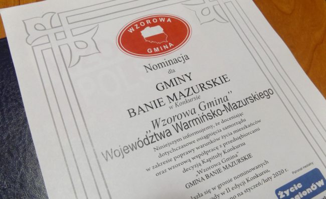 Gmina Banie Mazurskie otrzymała nominację w konkursie pn. „Wzorowa Gmina” Województwa Warmińsko-Mazurskiego, organizowanym przez spółkę „Wzorowi…