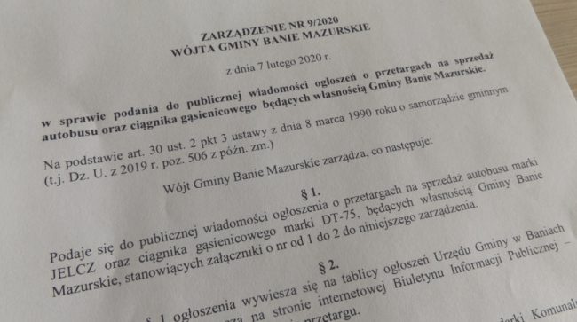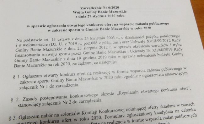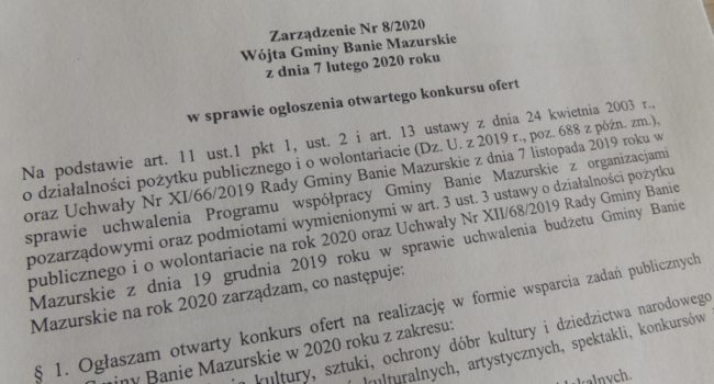 Opublikowano Zarządzenie Nr 8/2020 Wójta Gminy Banie Mazurskie z dnia 7 lutego 2020 roku w sprawie…