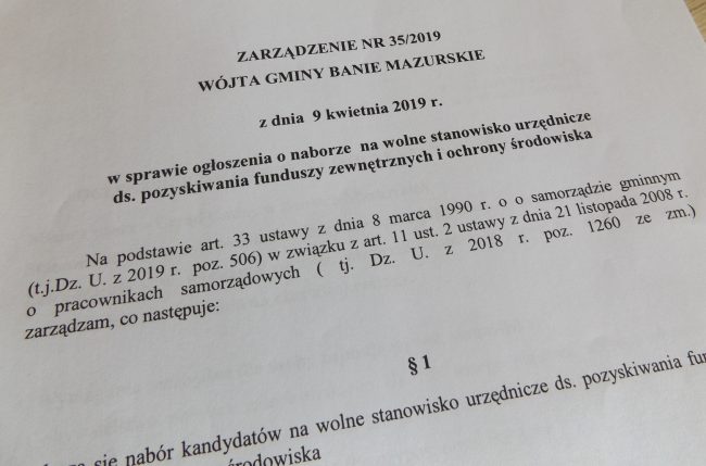 CIĄG DALSZY NABORU NA STANOWISKO DS. POZYSKIWANIA FUNDUSZY ZEW. I OCHRONY ŚRODOWISKA