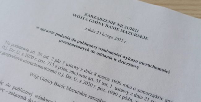 Zarządzeniem Nr 21/2021 Wójta Gminy Banie Mazurskie z dnia 23 lutego 2021 roku podano do publicznej…