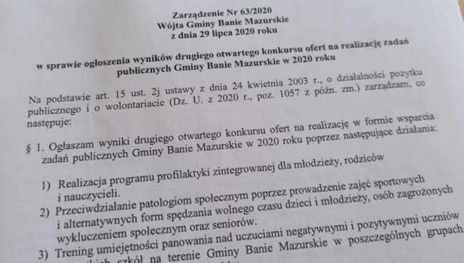 Na stronie internetowej BIP Gminy Banie Mazurskie opublikowano Zarządzenie Nr 63/2020 Wójta Gminy Banie Mazurskie z…