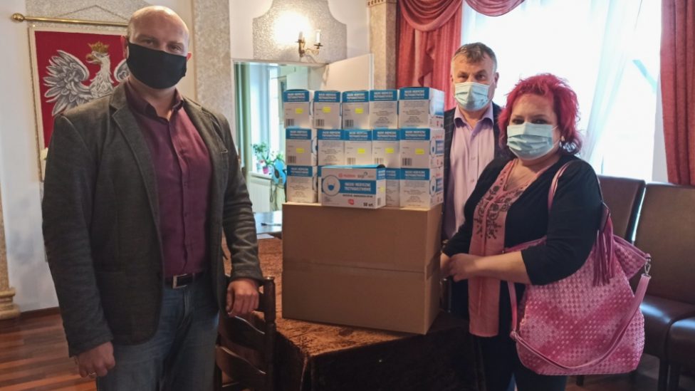 Przedwczoraj (poniedziałek, 14.09.2020 r.) wójt gminy Łukasz Kuliś przekazał na ręce dyrektora i wicedyrektora Zespołu Placówek Oświatowych w Baniach Mazurskich – Joanny Orzeł oraz Andrzeja Czebanyka 1800 szt. maseczek ochronnych.