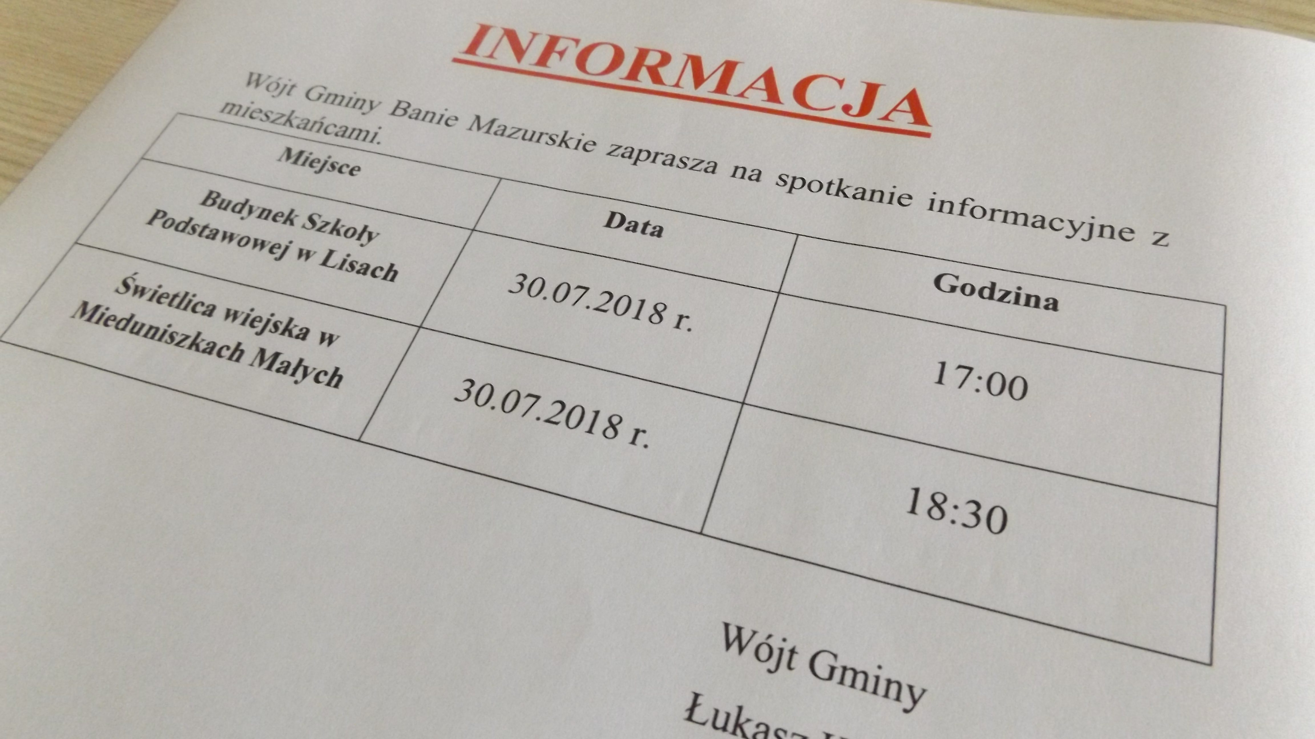 Wójt Gminy Banie Mazurskie zaprasza na spotkanie informacyjne z mieszkańcami.