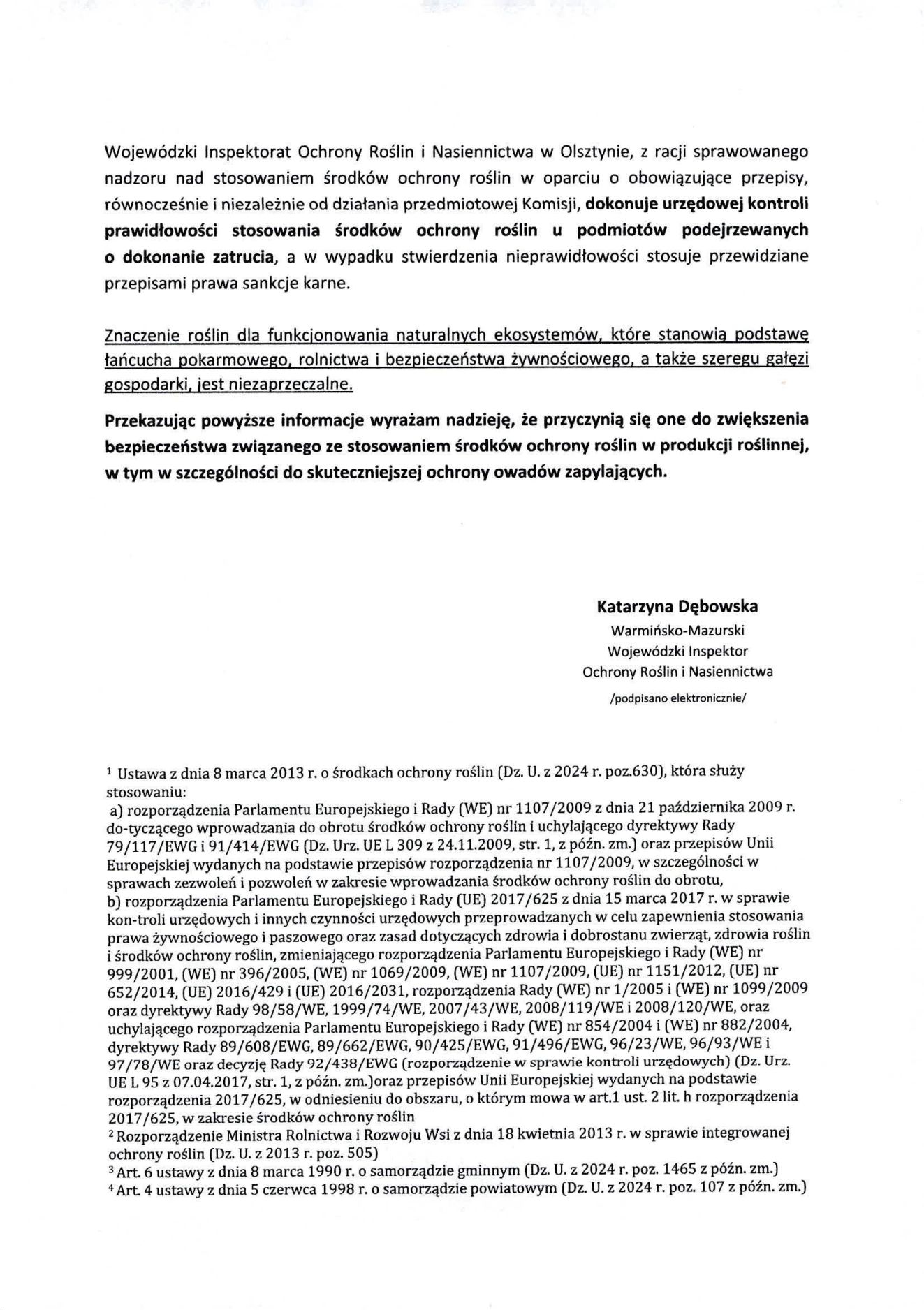 kwi152025 Opublikowano na prośbę Wojewódzkiego Inspektoratu Ochrony Roślin w Olsztynie (Oddział Powiatu Gołdapskiego w Gołdapi).Kategorie: Aktualności, WażneAutor: P.K.15 kwietnia 2025 Udostępnij ten wpis Share on FacebookShare on Facebook Share on XShare on X Share on WhatsAppShare on WhatsApp