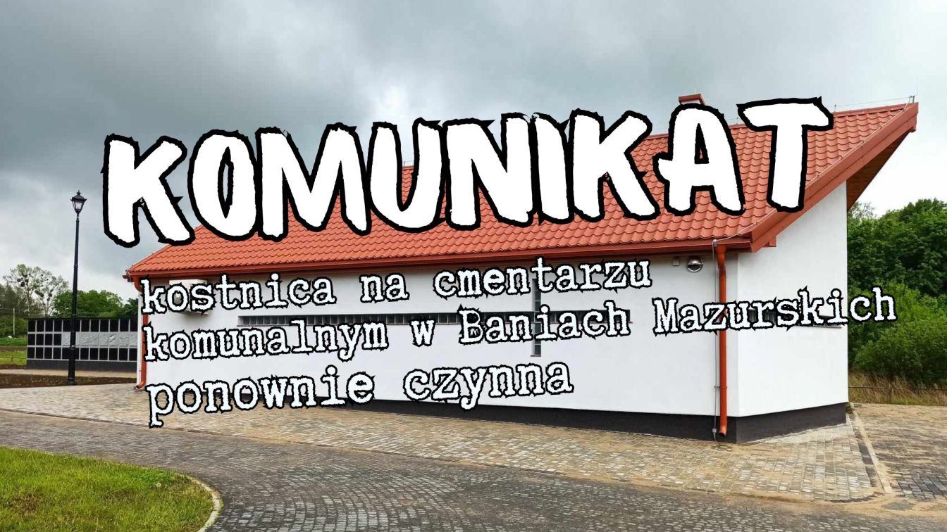 Urząd Gminy w Baniach Mazurskich informuje, iż dobiegły końca prace konserwacyjne w kostnicy zlokalizowanej na cmentarzu komunalnym w Baniach Mazurskich.
