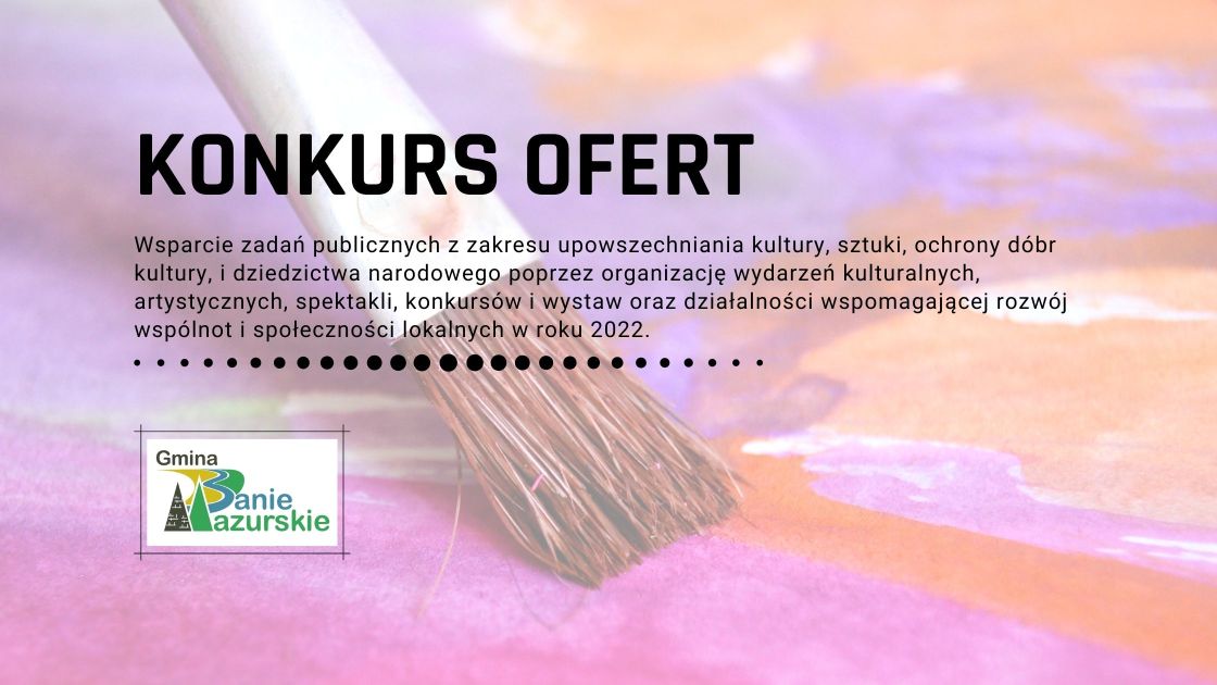 Wójt Gminy Banie Mazurskie ogłosił konkurs ofert na wsparcie zadań publicznych z zakresu upowszechniania kultury, sztuki, ochrony dóbr kultury, i dziedzictwa narodowego poprzez organizację wydarzeń kulturalnych, artystycznych, spektakli, konkursów i wystaw oraz działalności wspomagającej rozwój wspólnot i społeczności lokalnych w roku 2022.
