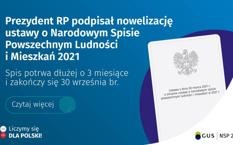 Informuje się, iż w związku podpisaniem przez z Prezydenta RP nowelizacji ustawy o Narodowym Spisie Powszechnym…