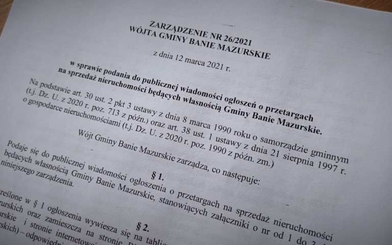 Zarządzeniem Nr 26/2021 Wójta Gminy Banie Mazurskie z dnia 12 marca 2021 roku podano do publicznej…