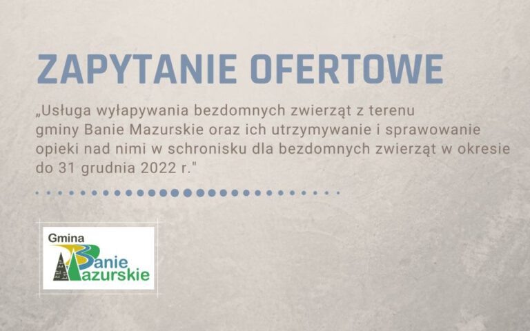 Gmina Banie Mazurskie opublikowała zapytanie ofertowe GKIŚ.ZO.271.3.2021 pn. „Usługa wyłapywania bezdomnych zwierząt z terenu gminy Banie…