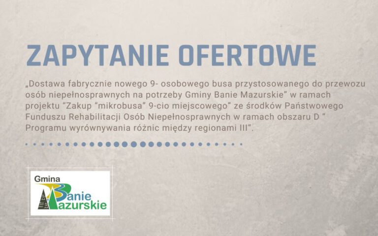 Gmina Banie Mazurskie opublikowała zapytanie ofertowe GKIŚ.ZO.271.05.2021 na „Dostawę fabrycznie nowego 9- osobowego busa przystosowanego do…