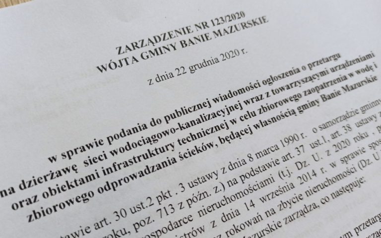 PRZETARG NA DZIERŻAWĘ SIECI WODOCIĄGOWO-KANALIZACYJNEJ WRAZ Z TOWARZYSZĄCYMI URZĄDZENIAMI ORAZ OBIEKTAMI