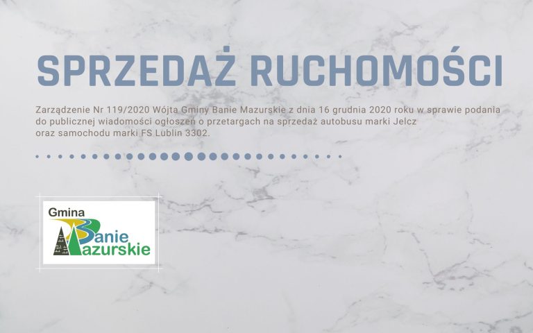Zarządzenie Nr 119/2020 Wójta Gminy Banie Mazurskie z dnia 16 grudnia 2020 roku w sprawie podania…
