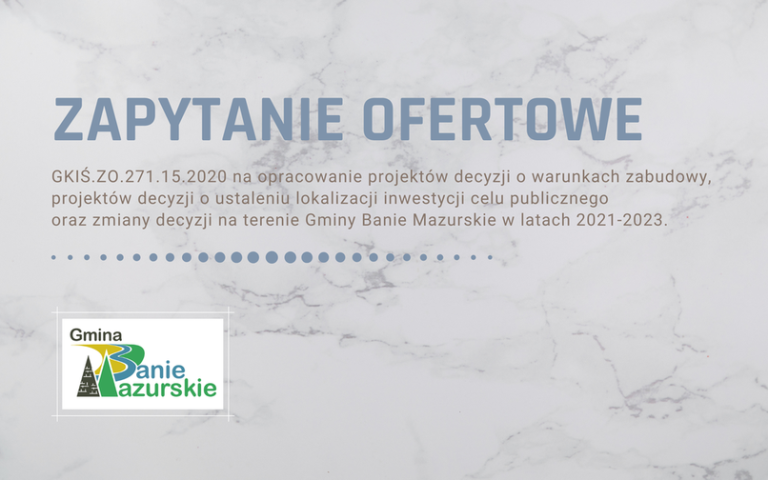 Na stronie internetowej BIP Gminy Banie Mazurskie opublikowano zapytanie ofertowe (GKIŚ.ZO.271.15.2020) na opracowanie projektów decyzji o warunkach…