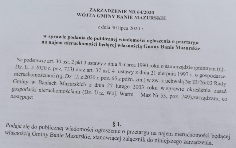 Na stronie BIP Gminy Banie Mazurskie opublikowano Zarządzenie Nr 64/2020 Wójta Gminy Banie Mazurskie z dnia…