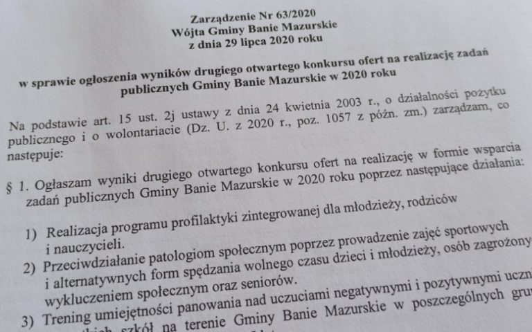 Na stronie internetowej BIP Gminy Banie Mazurskie opublikowano Zarządzenie Nr 63/2020 Wójta Gminy Banie Mazurskie z…