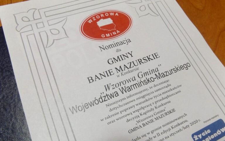 Gmina Banie Mazurskie otrzymała nominację w konkursie pn. „Wzorowa Gmina” Województwa Warmińsko-Mazurskiego, organizowanym przez spółkę „Wzorowi…