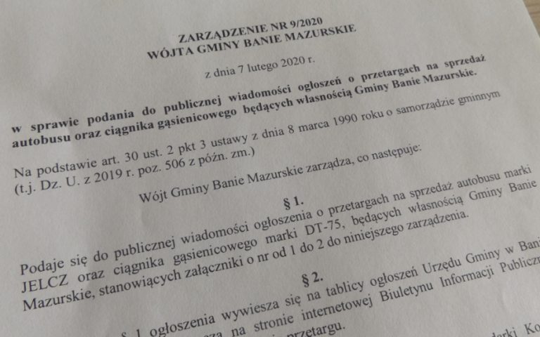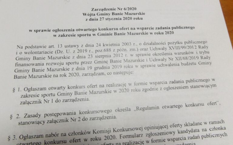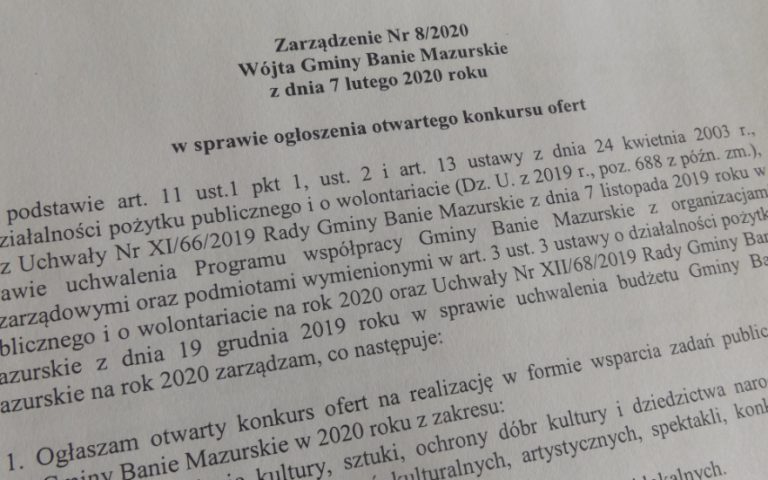 Opublikowano Zarządzenie Nr 8/2020 Wójta Gminy Banie Mazurskie z dnia 7 lutego 2020 roku w sprawie…
