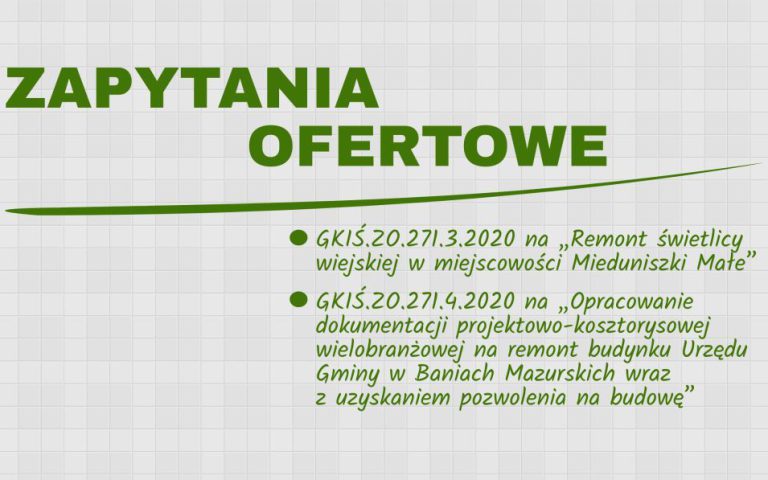 Na stronie Biuletynu Informacji Publicznej Gminy Banie Mazurskie w ostatnim czasie opublikowano kolejne zapytania ofertowe: GKIŚ.ZO.271.3.2020…