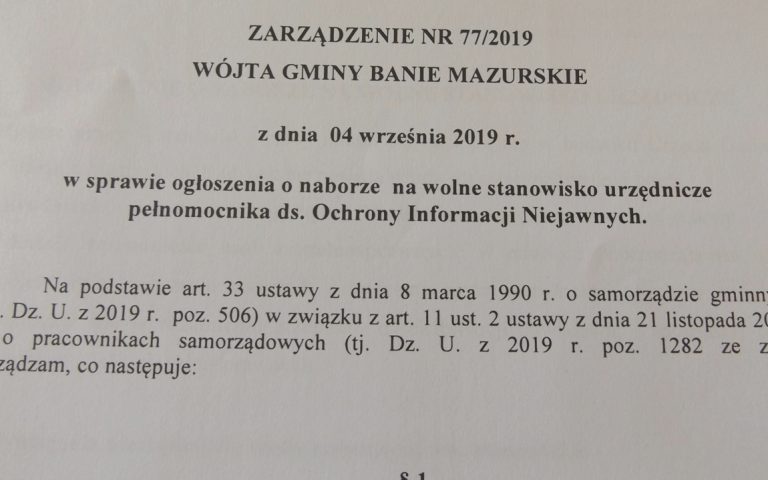 Na stronie BIP Gminy Banie Mazurskie opublikowano zarządzenie nr 77/2019 Wójta Gminy Banie Mazurskie z dnia…