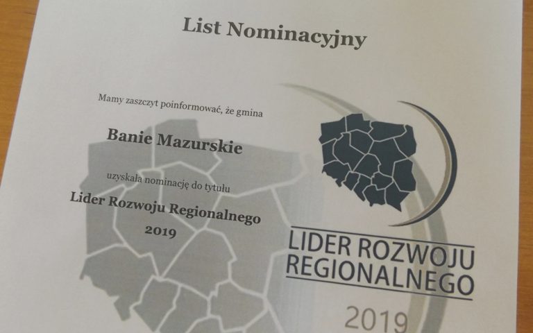 Gmina Banie Mazurskie otrzymała nominację do tytułu „Lider Rozwoju Regionalnego 2019” w programie prowadzonym przez Polską…