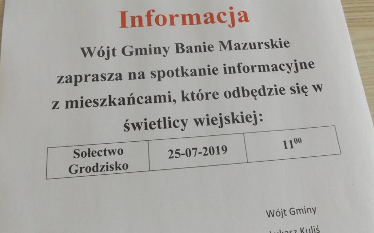 Wójt gminy Łukasz Kuliś zaprasza mieszkańców sołectwa Grodzisko na spotkanie informacyjne, które odbędzie się dnia 25.07.2019…