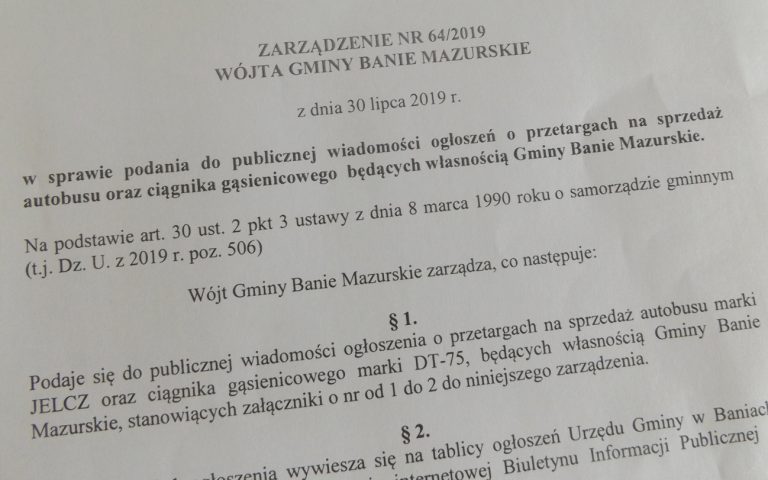 Na stronie internetowej BIP Gminy Banie Mazurskie zamieszczono Zarządzenie Nr 64/2019 Wójta Gminy Banie Mazurskie z…