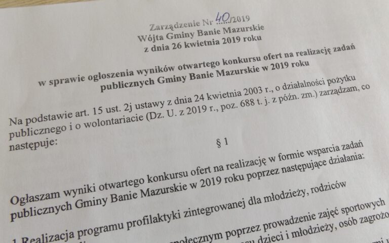 Na stronie BIP Gminy Banie Mazurskie opublikowano Zarządzenie Nr 40/2019 Wójta Gminy Banie Mazurskie z dnia…